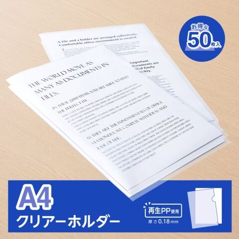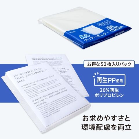 プラス クリアーホルダー A4 再生材使用パック品(50枚パック) FL-175HO-50(89352) 【返品種別A】