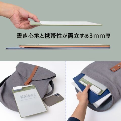 厚さわずか3mm。ビジネスバッグや通学カバンにもスリムに収まる。