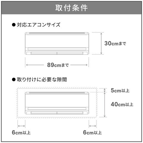 • 対応エアコンサイズ:幅89cmまで×高さ30cmまで