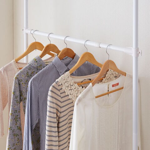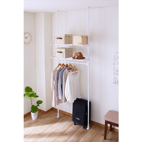 ※支柱やハンガーパイプ、棚等を強くゆすったり、引っ張ると転倒や破損の原因になります。また棚に乗る、ハンガーパイプにぶら下がる行為は危険です。絶対にしないでください。特に、小さなお子様にはご注意ください。