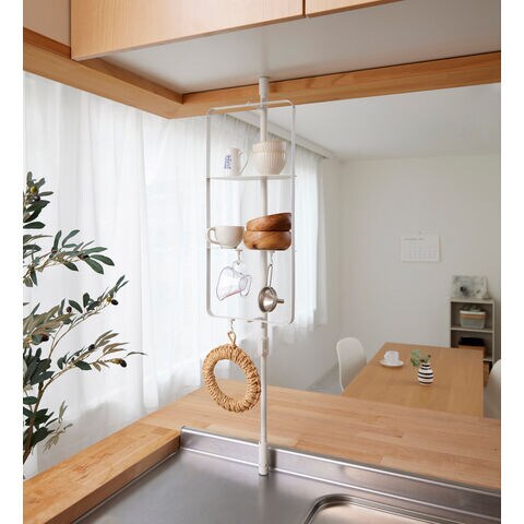 ◆キッチンコーナー用 突っ張りラック マットホワイト