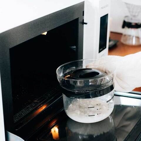 ◆お米を水に浸し、電子レンジで10分で炊き上がります。(白米1合、600Wの場合)