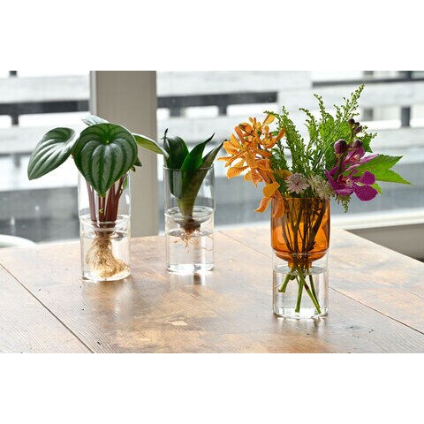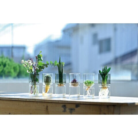 ◆水耕栽培用と通常の花器の2way仕様。耐熱ガラス素材にこだわり、透明でシンプルな美しさと機能性をあわせ持つデザインです。