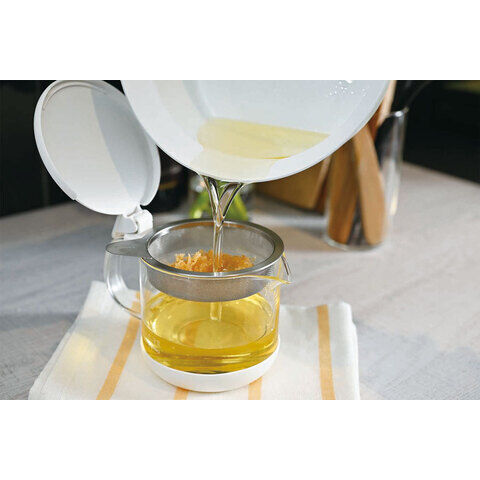 ●漉し網で汚れを取り除くシンプルな構造。漉しやすく洗いやすい広口デザイン。