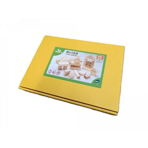 東北地方の森で採れた木目の美しいトチとカエデを無塗装のまま加工した23ピースの積み木セット。