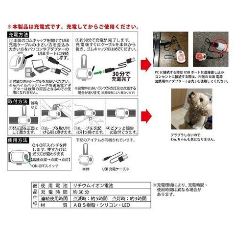 ■連続使用時間:点滅時/約5時間、点灯時/約3時間