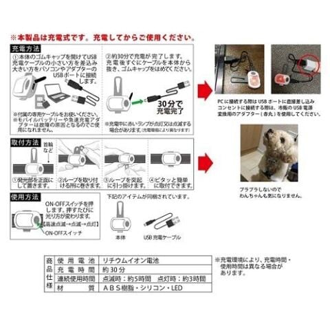 ■連続使用時間:点滅時/約5時間、点灯時/約3時間