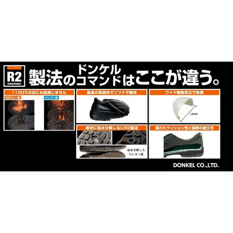 ドンケル ラバー2層底安全靴 ヒモ 耐滑 ミドルカット ブラック 23.5cm JIS規格 DONKEL R2-03-BK-23.5 【返品種別B】