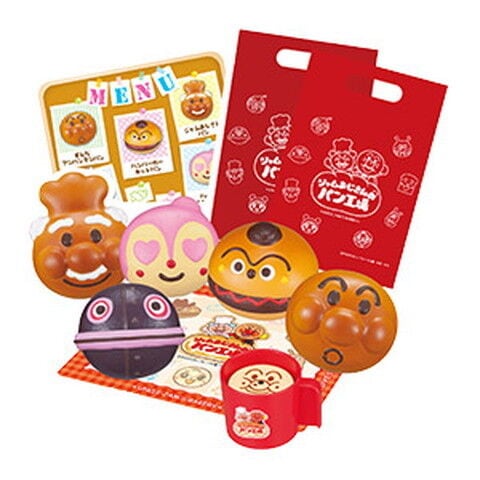 パン×5、コップ×1、アンパンマンラテ×1、ショップバッグ×2、ランチシート×1