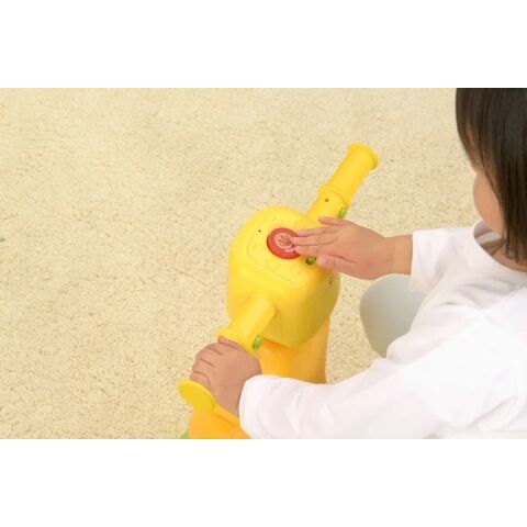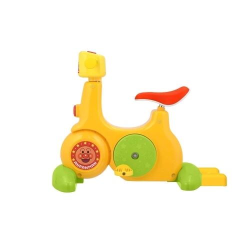 漕いだり、ハンドルをきったり、ボタンをおしたりするとアンパンマンたちの楽しい声と、メロディが流れます。