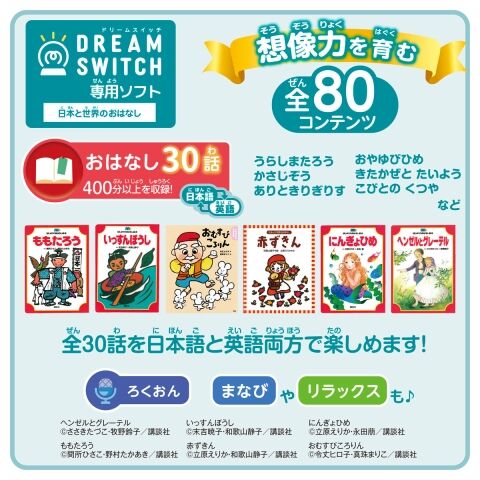 たくさんの日本と世界のお話の読み聞かせができる DREAM SWITCH(ドリームスイッチ)プレミアム専用ソフトです。