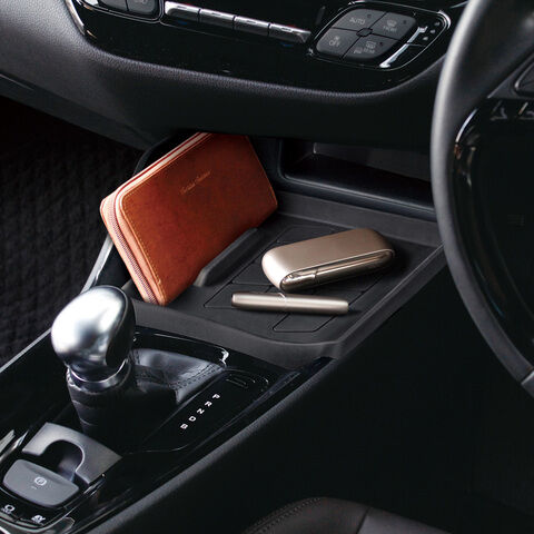 ◆センターコンソール側も置いた物もガタつかず、傷が付きにくい軟質素材。