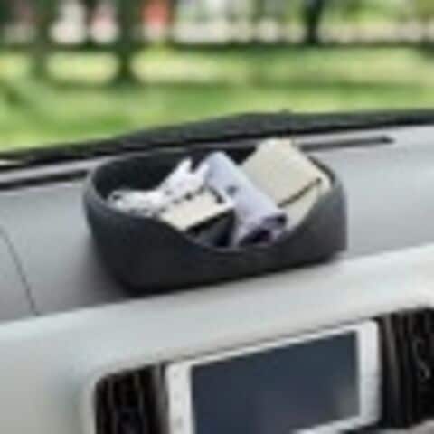 ◆重り+すべり止めでどっしりとした安定感のある生地製の収納トレイです。