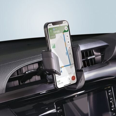 ◆エアコン吹き出し口にダイヤルタイプのクリップで固定するだけの簡単取付です。