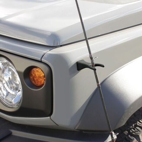 ◆駐車場での準備中等、車に貼り付けてロッドの仮置きができる。
