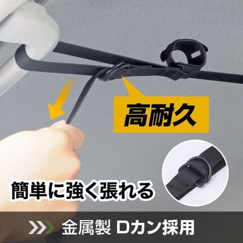 ◆ベルトを簡単に強く張ることができる金属製のDカンを採用しています。
