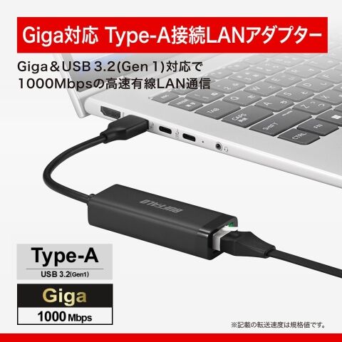 バッファロー|BUFFALO Giga対応 Type-A USB 3.2 (Gen1)用 LANアダプター(ブラック) LUA6-U3-AGTE-BK 【返品種別A】