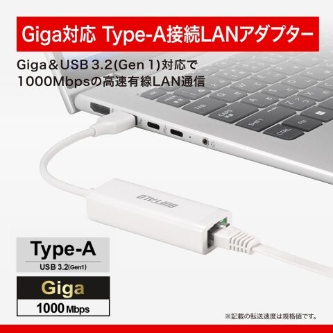 バッファロー|BUFFALO Giga対応 Type-A USB 3.2 (Gen1)用 LANアダプター(ホワイト) LUA6-U3-AGTE-WH 【返品種別A】