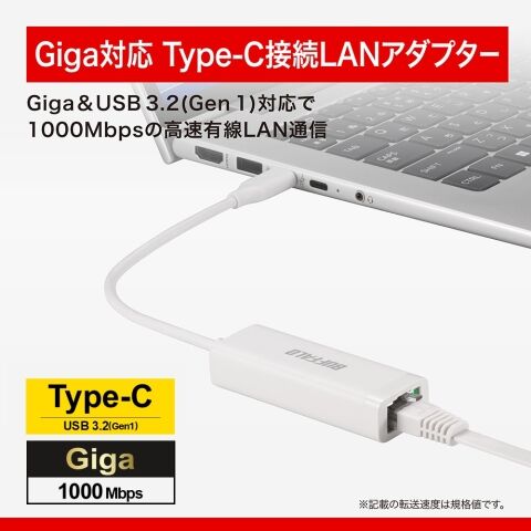 バッファロー|BUFFALO Giga対応 Type-C USB 3.2 (Gen1)用 LANアダプター(ホワイト) LUA6-U3-CGTE-WH 【返品種別A】
