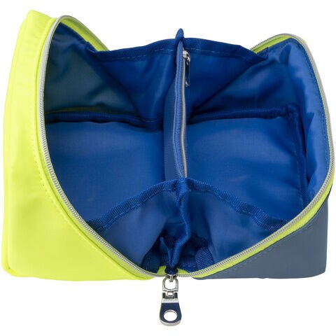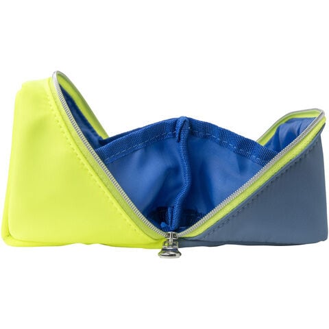 ポーチの中が見やすく開いたままで取り出しやすいのに、閉じるとコンパクトになります。