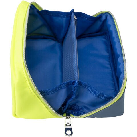 ポーチの中が見やすく開いたままで取り出しやすいのに、閉じるとコンパクトになります。