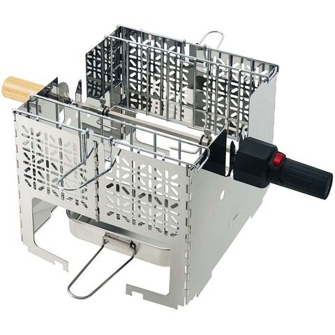 お肉を回してシュラスコや、鳥の丸焼きなど、お好きな食材をくるくる回すこともでき、アウトドア料理の幅が広がるアイテムです。