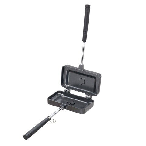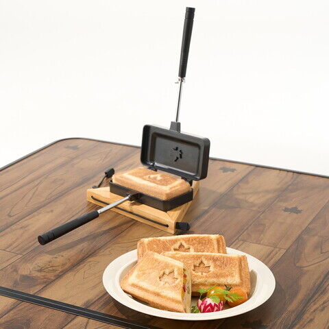 - 性能/特長:、食パン1枚でホットサンドができるちょうどいい食べきりサイズ! 、ソロキャンプや女性やお子様、一人暮らしの方にもおすすめ! 、着脱可能ハンドルでコンパクト収納、たき火OK、食パンのミミごと焼けるサイズ
