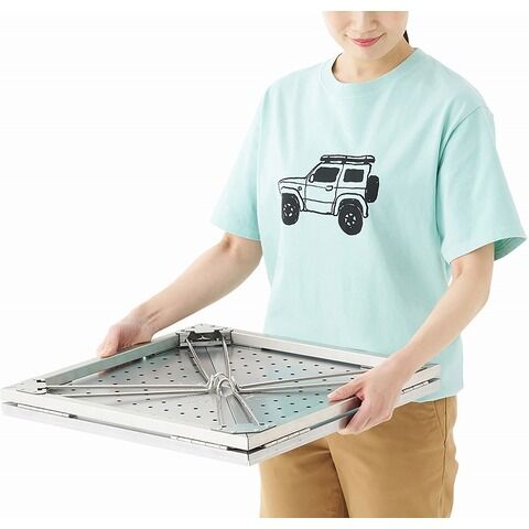 ◆耐熱性に優れたスチール素材を採用しており、天板をたたんで「耐熱テーブル」としてお使いいただけます。