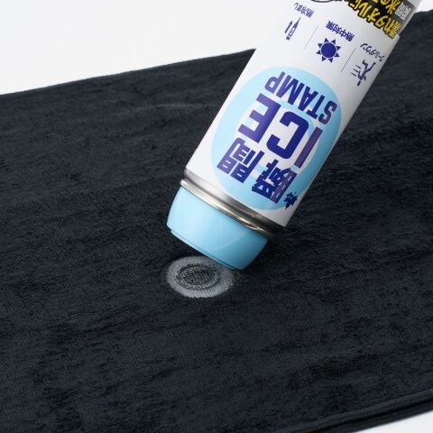 濡らしたタオルやハンカチに直接プッシュするだけで、氷のスタンプができ冷却タオルとして使えるアイテム。