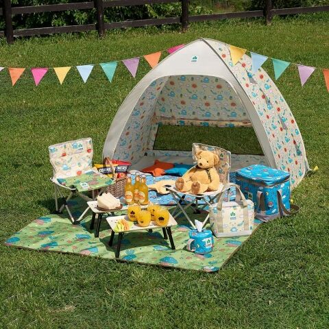 たためる抗菌ソフトクーラーに、ワクワク感溢れる総柄デザインを施しました。