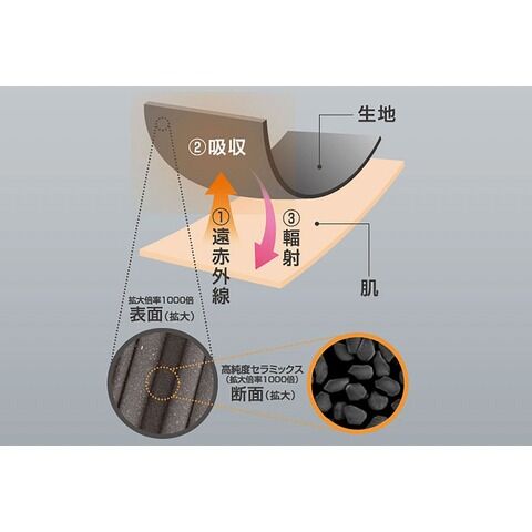 この特殊繊維が身体の内部から放出される遠赤外線(体温)を輻射することにより、