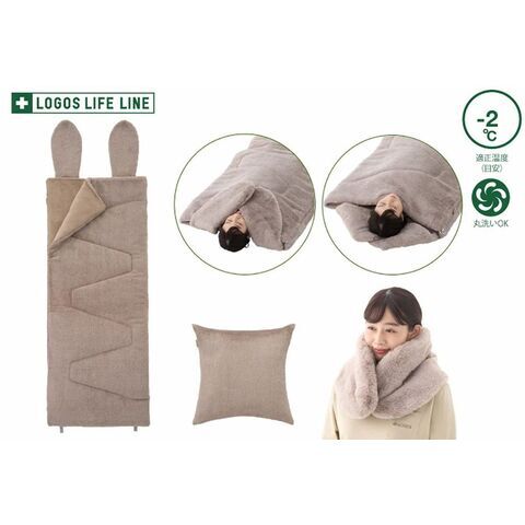 ロゴス 丸洗いラビットファータッチシュラフ・-2 うさみみ付(ベージュ)【適正温度-2℃まで】 No.72600028 【返品種別A】