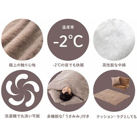 ファスナーを全開にすれば、お布団のように使ったり、ラグとして広げて使うこともできます。