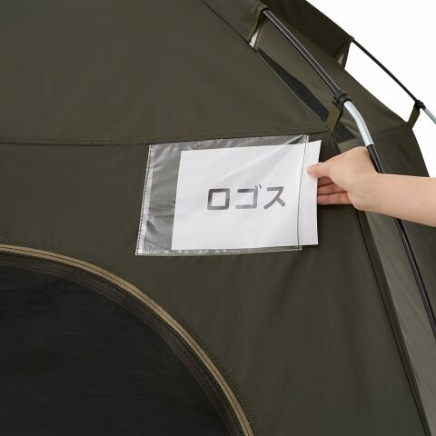 テント前面には、名前を書いた紙を入れられる表札ポケット付きで、避難所でも、ご自身のテントをひと目で確認できます。