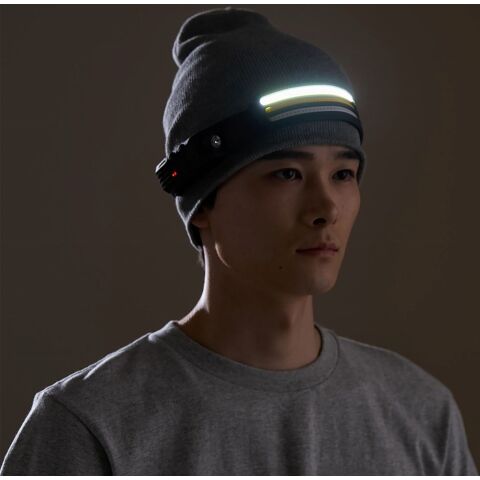 頭にしっかりフィットしながらも軽量な、シリコン製の薄型ヘッドライト。