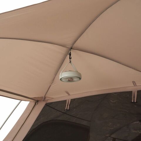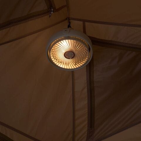 さらにライト機能も搭載し、夜のテント内をやさしく照らします。