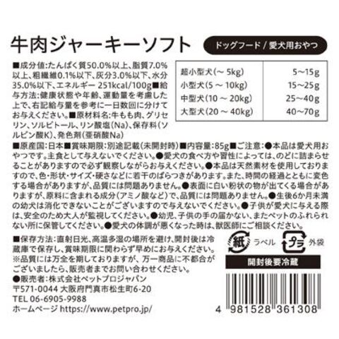 ペットプロ 国産おやつ 牛肉ジャーキーソフト 85g コクサンオヤツギユウニクJソフト85G 【返品種別A】