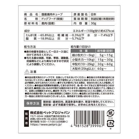 ペットプロ HappyDays 国産鹿肉キューブ 犬用 30g コクサンシカニクキユ-ブイヌヨウ30G 【返品種別B】