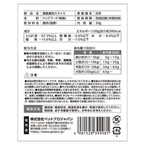 ペットプロ HappyDays 国産鹿肉スライス 犬用 30g コクサンシカニクスライスイヌヨウ30G 【返品種別B】