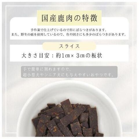 ◆国産の鹿を丁寧に処理した犬用おやつ。着色料・保存料不使用。