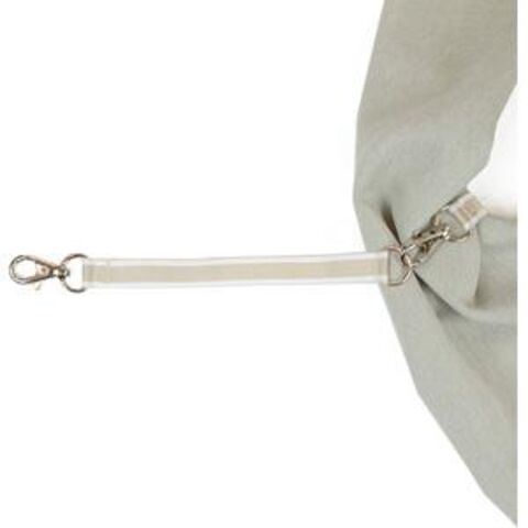 3.ワンちゃんをスリングの中に入れ、飛び出し防止リードと首輪をつなぎます