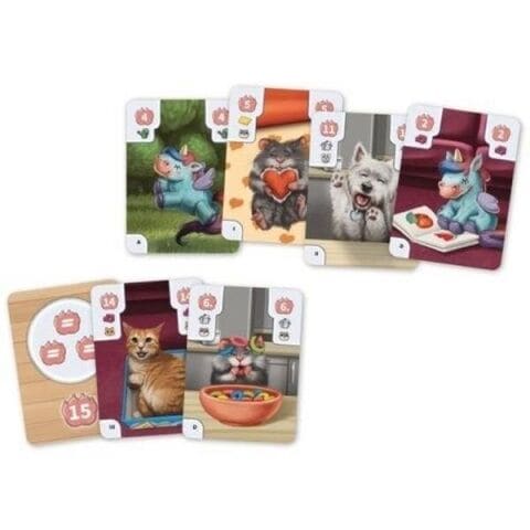 ストーリーは作るのが早ければ早いほど肉球がたくさんもらえるので、他のプレイヤーの動きを見て、いまどのカードを集めるべきかよく考えて選びましょう。