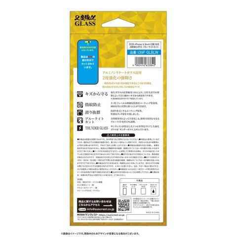 サンクレスト iPhone 17用 /16 PRO 2度強化ガラス ブルーライト SUNCREST I39FGLBLW 【返品種別A】