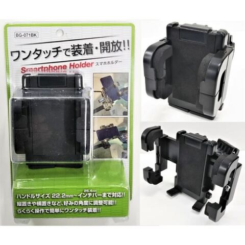 ユニカー工業 ワンタッチスマホホルダー(ハンドルサイズ:22.2mm~インチバーまで対応) Unicar BG-071BK 【返品種別A】