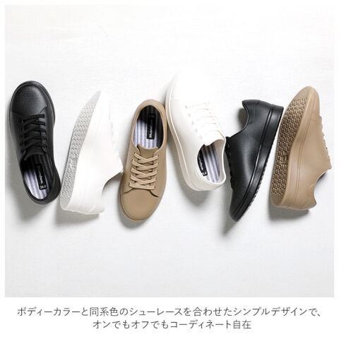 ボディーカラーと同系色のシューレースを合わせたシンプルデザインで、オンでもオフでもコーディネート自在。