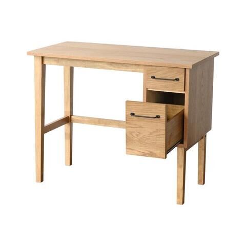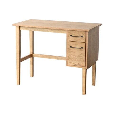 - 素材:天板:天然木化粧繊維板(オーク材)、脚:天然木(パイン材)、幕板:天然木化粧繊維板(オーク材)、取っ手:金属(スチール)、木部:ラッカー塗装、金属:焼付け塗装