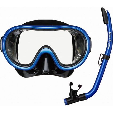 Reef Tourer(リーフツアラー) マスク&弁付きWガードシュノーケル 子ども(4~9歳)用 2点セット(ブラックマンタブルー) TBT-RC9205-BKMB 【返品種別A】