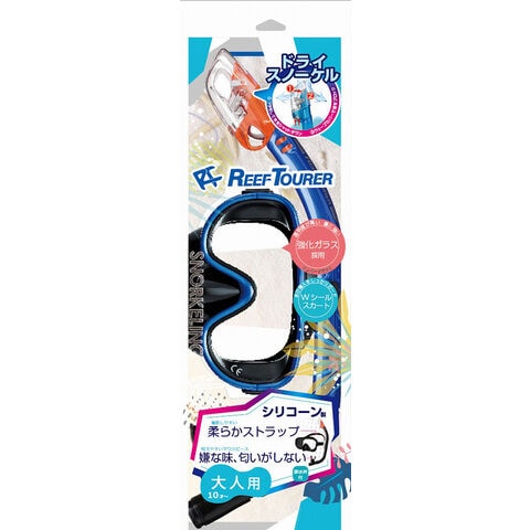 Reef Tourer(リーフツアラー) マスク&弁付きシュノーケル 大人用 2点セット(ブラックマンタブルーブルー) TBT-RC9107-BKMBB 【返品種別A】