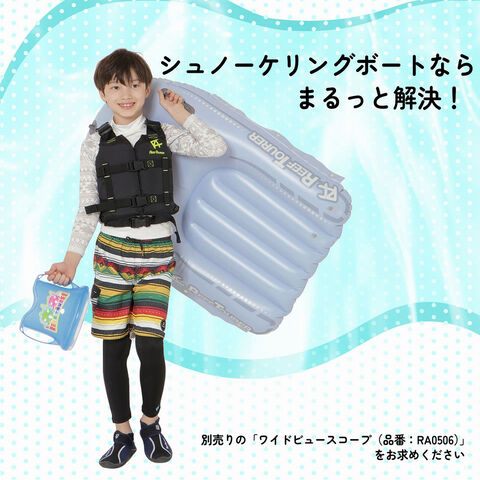 ◆フロートの中央部にあるホール部分に別売のワイドビュースコープ(RA0506)を入れればマスクもシュノーケルも使わずボートに乗ったまま水中観察を楽しむことができます。