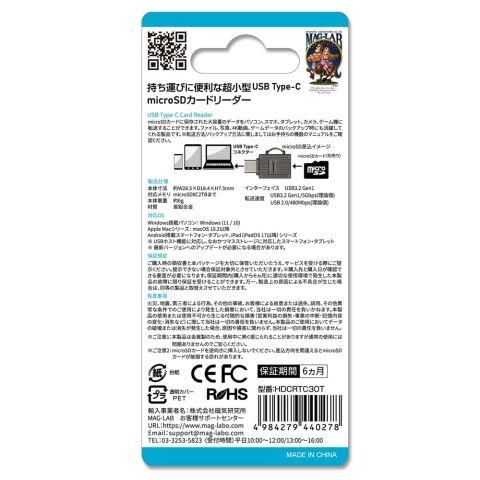 『HIDISC バックアップに最適 USB3.2 microSDカードリーダー HDCRTC30T』は、Type-C接続に対応した、超小型・軽量のmicroSDカードリーダー。